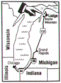 Nestled in the pine trees, near the best skiing and snowboarding mountains in northern Michigan is the Oak Park Lodge. Our 10 bedroom, 3 bath well-kept lodge is located in Boyne Falls, MI, approximately 6 hours north of Chicago metro area.